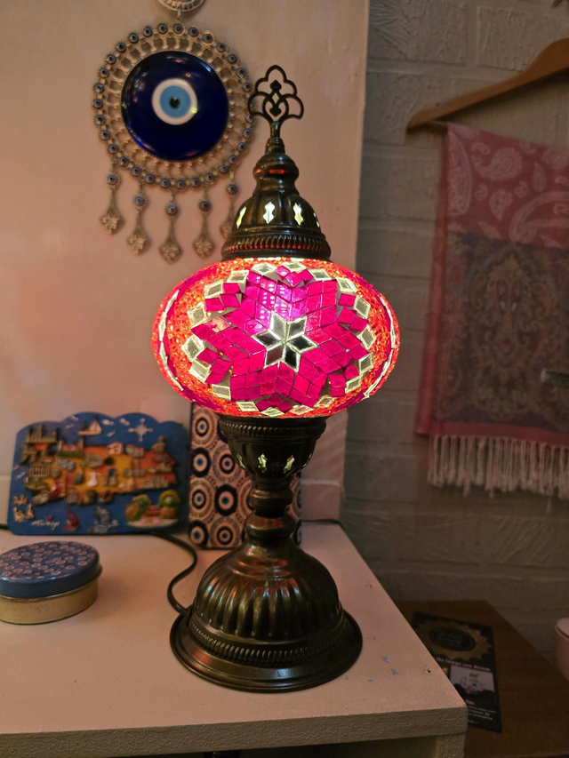 - Hand-blown solid glass mosaic globe has a 6" diameter.