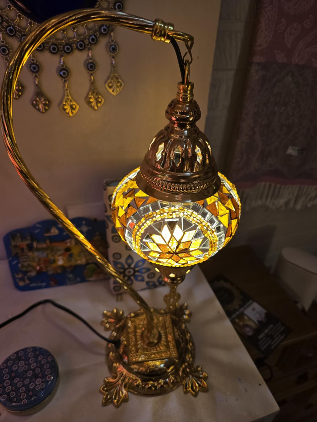 - Hand-blown solid glass mosaic globe has a 5" diameter.