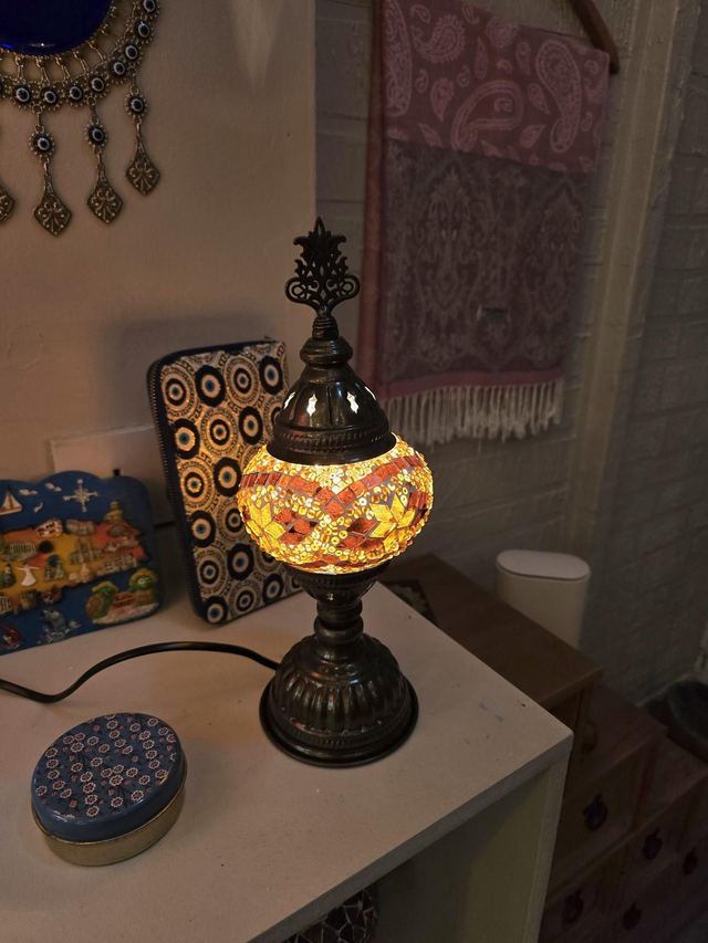 - Hand-blown solid glass mosaic globe has a 4" diameter.
